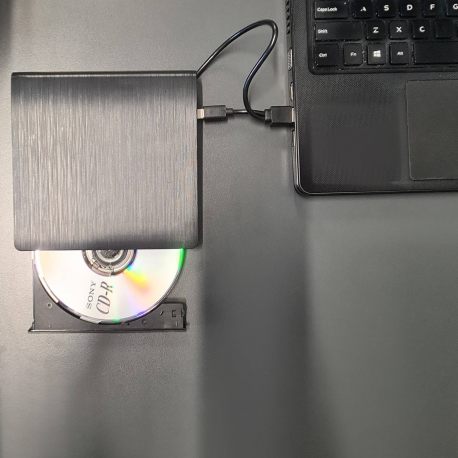 Napęd zewnętrzny z nagrywarką płyt CD podłączany na USB do laptopa. Jego największe cechy to smukły kształt, niska waga i niewielkie gabaryty, które pozwalają na łatwe przechowywanie oraz przenoszenie w plecaku, torbie, a nawet w kieszeni.