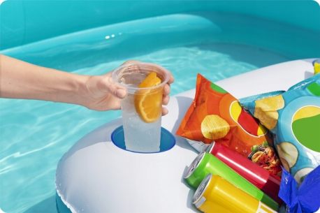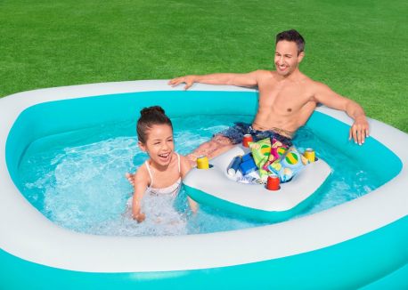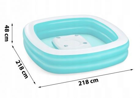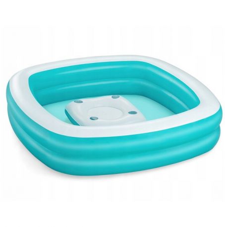 Dmuchany basenik ogrodowy w kształcie kwadratu, wykonany został specjalnie dla najmłodszych wielbicieli rozrywki letniej. Piękna, żywa kolorystyka oraz spora głębokość, to idealna okazja, by zamiast zanudzać się w domu, wyjść na zewnątrz i w świetle gorących promieni słonecznych, popluskać się w wodzie. Ścianki basenu wykonane z dwóch dmuchanych pierścieni. Wyjmowana konsola środkowa na żywność, gry i niezbędne akcesoria. Konsola - stolik łączy się z basenem rzepem i jest łatwa do odłączenia. Do basenu została dołączona łatka naprawcza.