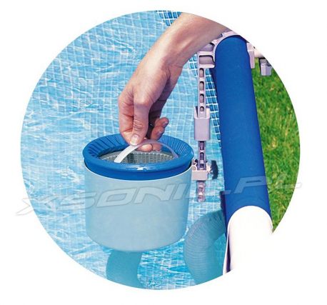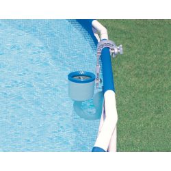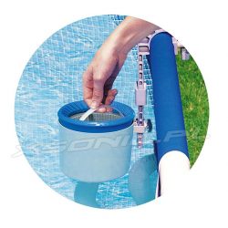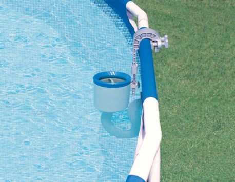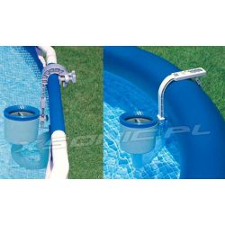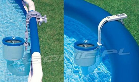 Skimmer - podłączony do pompy, powierzchniowo oczyszcza wodę i dozuje chemię.