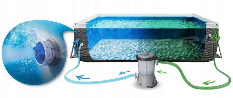 Pompa służy do utrzymania czystej wody, dlatego też powinna być włączona po kąpieli (podczas zażywania kąpieli, powinna bezwzględnie zostać odłączona z zasilania). Ze względy na częstotliwość jej aktywnego trybu zaleca się wymianę filtra raz na 1 lub 2 tygodnie. Dwustronna drabinka typu Safe Ladder, która umożliwia wejście i wyjście z basenu. Drabinka posiada zdejmowane stopnie, blokujące wejście do basenu małym dzieciom. Przepływowy dozownik chemii Chemconnect™ to najnowsze rozwiązanie marki Bestway. Jest to zintegrowany, automatyczny dozownik chloru połączony z pompą filtrującą. Dzięki pracy pompy jednostajnie rozprowadza chlor w Twoim basenie. Dostosowany jest do tabletek chemicznych o średnicy 2,5cm.