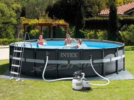 Basen ogrodowy 549 x 132 cm stelażowy Ultra XTR Frame 18w1 INTEX 26330. Model Intex #26330 to kąpielisko o wymiarach 549 x 132 cm. Posiada nieco zmieniony kolor niecki na ciemno szary i nowoczesny system mocowania stelażu. Kupując ten produkt otrzymasz ponad pięciometrowy basen stelażowy w komplecie z pompą piaskową oraz różnymi akcesoriami potrzebnymi na cały sezon kąpielowy. Zarówno mata pod basen oraz pokrywa to elementy bez których basen nie może prawidłowo funkcjonować. Weekend w ogrodzie lub na działce rekreacyjnej zwalnia Cię z obowiązku cotygodniowego stania w korkach. Nie spędzaj dnia za kierownicą, gdyż teraz już nie musisz tak często jeździć na kąpielisko publiczne.