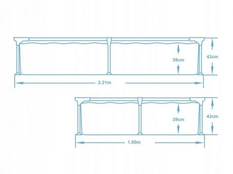 Stosunkowo do pozostałych modeli basenów ogrodowych, jego wymiary są niewielkie 221 x 150 x 43 cm, więc basen powinien zmieścić się nawet na niewielkim ogródku czy też tarasie. Wystarczy tylko parę gorących dni by woda w kąpielisku była nagrzana. Basen wypełniamy wodą w 90% jego wysokości, a to wystarczy my maluch bawiły się ze swoimi przyjaciółmi.
