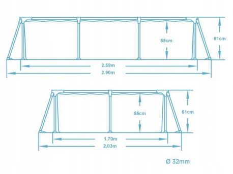 Basen ogrodowy 259 x 170 x 61 prostokątny Bestway 15w1 56403N. Basen stelażowy w kształcie prostokąta to rozwiązanie problemu dla małych ogrodów czy też tarasów, które nie dysponują określoną średnicą wolnej przestrzeni. Dlatego też producent Bestway wprowadził baseny prostokątne, które mogą lepiej pasować do zagospodarowania wolnego miejsca. Wytworzone z mocnego tworzywa PVC posłużą nam przez kilka sezonów kąpielowych. Całą konstrukcję wspiera stabilny stelaż. W zestawie znajduje się pompa filtrująca Bestway o wydajności 1249 litrów/godz oraz wkład do pompy filtrującej.