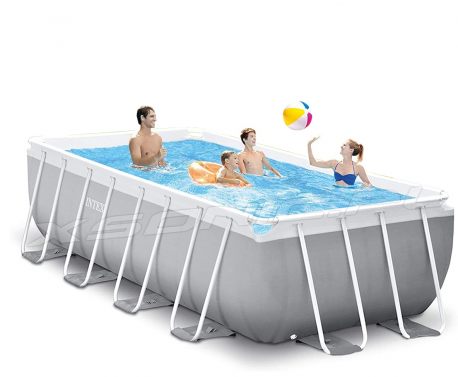 Basen ogrodowy stelażowy 400 x 200 x 122 cm 10w1 INTEX 26790GN. W ciepłe dni będzie idealnym miejscem do zabawy dla dzieci i relaksu dla dorosłych. Wspólna kąpiel i odpoczynek dadzą wszystkim nową energię. Cztery metry długości, dwa szerokości i metr głębokości wystarczy, aby świetnie się bawić z rodziną i trochę poruszać. Ten basen prostokątny to zestaw 10w1. Kupując go otrzymasz pompą filtrującą, wymienny filtr oraz dwustronną drabinką Safe Ladder, która posiada blokadę wejścia do basenu. W zestawie znajdują się wszystkie połączenia i złączki potrzebne do zmontowania kąpieliska.