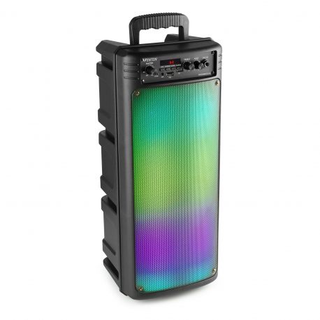 Boombox głośnik mobilny BT BoomBox300 LED mikrofon Fenton. Dzięki wbudowanemu akumulatorowi, mikrofonowi i licznym opcjom wprowadzania; USB, karta micro SD i wbudowane gniazdo mikrofonu, możesz z łatwością śpiewać wszystkie swoje ulubione piosenki. W pełni przenośny głośnik BoomBox Party Speaker może być używany poziomo lub pionowo w celu zwiększenia elastyczności. Możliwe jest również bezprzewodowe połączenie dwóch głośników BoomBox Party, aby uzyskać jeszcze mocniejszy dźwięk stereo. Idealny do domowej rozrywki, karaoke, szkół, seminariów i wielu innych zastosowań.