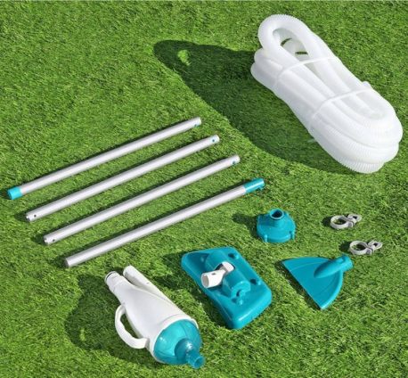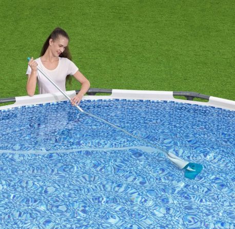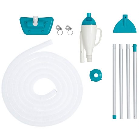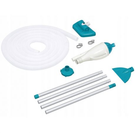 Odkurzacz do czyszczenia dna basenu końcówki Bestway 58212. Zestaw czyszczący marki Bestway pasuje do wszystkich basenów rozporowych i stelażowych. Podłączamy go do pompy basenowej. W zestawie znajduje się kij teleskopowy o długości 190 cm, który sprawdzi się we wszystkich rodzajach basenów. Do odkurzacza mamy możliwość podłączenia dwóch różnych końcówek.