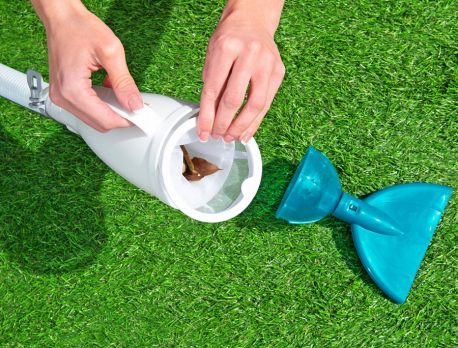 Całość łączy się za pomocą węża o długości 6 metrów. Do prawidłowego działania odkurzacza niezbędna jest pompa filtrująca. W zestawie znajdują się również dwa różne adaptery do pompy filtrującej.