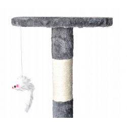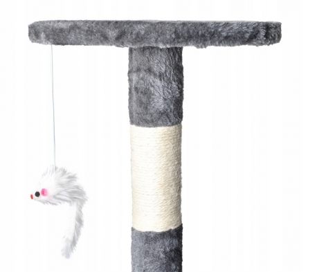 DRAPAK Z 4 POZIOMAMI – drapak w formie drzewka ma aż 118 cm wysokości, podzielony został na 4 pięter, przez które kot może się swobodnie przemieszczać i leniuchować, ale również czaić się i bawić z innymi kotami. Solidna konstrukcja z szeroką podstawą zapewnia stabilność drapaka. Główną zaletą drzewka jest przytulny domek na którym umieszczone są dwustopniowe schodki. Kociak będzie mógł swobodnie odpocząć. Na drzewku umieszczono puchatą myszkę, które pobudzają kocią ciekawość i zachęcają kota do zabawy czy polowania. Została zamontowana na lince na 4 piętrze drzewka.