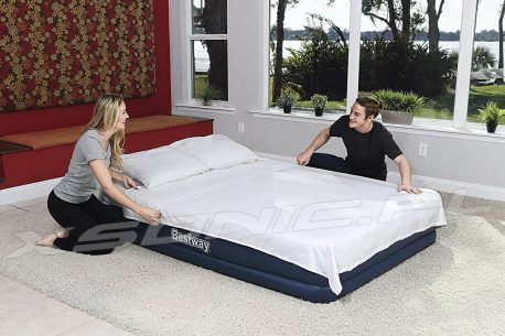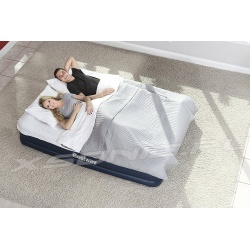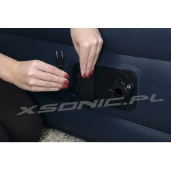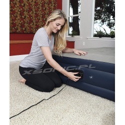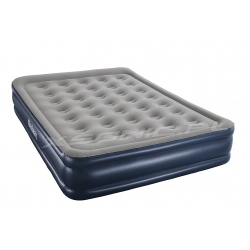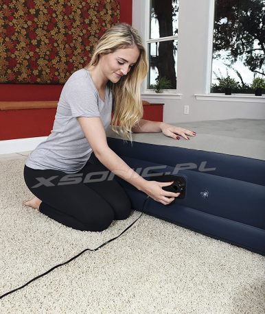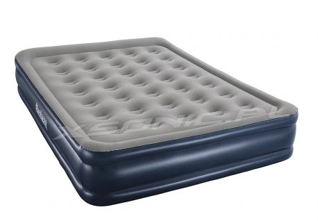 Ten materac jest na tyle mocny, że sprawdzi się również na biwaku podczas wyjazdu na łono natury. Dodatkowy komfort podczas leżenia potęguje poduszka zintegrowana z materacem. Jest to lekkie wybrzuszenie na krawędzi materaca, które stanowi idealne podparcie pod głowę. Dmuchany stelaż coil-beam łączy górę i spód materaca za pomocą pionowych tub. Prezentowany materac welurowy posiada wbudowaną pompkę elektryczną zasilaną z sieci 220V. Czas potrzebny na przygotowanie do użytku dwuosobowego materaca wynosi około 280 sekund. W zestawie znajduje się torba podróżna ułatwiająca jego transport oraz przechowywanie.