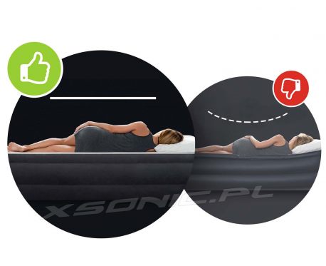 Materac dwuosobowy z wbudowaną pompką 203 x 152 x 46 cm INTEX 64414. Posiada niesamowitą konstrukcję Fiber-Tech bazującą na setkach wytrzymałych włókien poliestrowych, które się nie rozciągają. Takie dmuchane łóżko znajdzie zastosowanie w każdym domu. Możesz z niego korzystać jak z normalnego posłania lub awaryjnie w przypadku odwiedzin gości. Rozstawione w salonie lub w sypialni na pewno nie zakłóci harmonii ani wystroju mieszkania. Duży komfort spania, wytrzymała konstrukcja i wykończenie w postaci miękkiego weluru to nie jedyne jego zalety. Materac posiada wbudowaną pompkę elektryczną w jedną ze ścian. Po podłączeniu do zasilania sieciowego 220V napompuje się sam w ciągu 4 minut. Wymiary 203 x 152 x 46 cm pozwalają na swobodne spanie i relaks. W zestawie znalazła się wygodna torba do przenoszenia materaca.