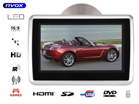 Najnowsza wersja dobrze przyjętego samochodowego odtwarzacza DVD, nowy model posiada matrycę o podwyższonym kontraście co gwarantuje jeszcze lepszy obraz niż w poprzedniku. Monitor do montażu na zagłówku samochodowym z wbudowanym optycznym napędem DVD. Urządzenie charakteryzuje się najprostszym na rynku systemem montażu; bez przykręcania, wiercenia, ingerencji w budowę siedzeń i zagłówków. Wystarczy założyć monitory na dołączony w zestawie metalowy uchwyt a następnie założyć całość na zagłówek. Urządzenie zostało dodatkowo wyposażone w czytnik kart pamięci SD oraz złącze USB do podłączenie pendriv-a. Wbudowany odtwarzacz multimedialny pozwala na odtwarzanie najbardziej popularnych formatów wideo z pamięci przenośnej.