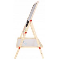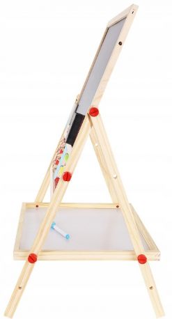 DREWNIANA - rama tablicy edukacyjnej wykonana jest w całości z drewna. Wszystko jest doskonale wyszlifowane i bezpieczne dla najmłodszych. Tablica jest obrotowa i można używać jej na 2 sposoby. Może być skierowana do nas czarną, bądź białą stroną. W zestawie znajdują się duże śruby, które pozwolą na wygodny obrót i zmianę pozycji.