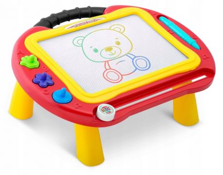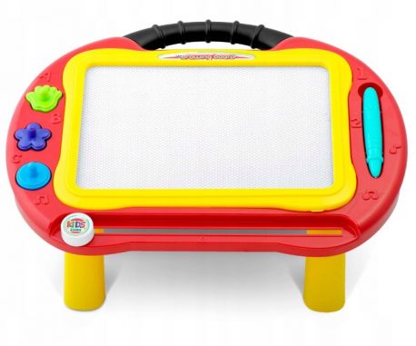Znikopis tablica magnetyczna stolik do rysowania dla dzieci czerwony. W trosce o rozwój motoryki mniejszej dziecko może wykonać precyzyjne ruchy dłońmi. Tablica magnetyczna zachęci do rozwoju dzieci, które nie lubią rysować! 2w1 funkcjonalny stoliczek i tablica. Po przyczepieniu nóżek blat jest ergonomicznie pochylony, co umożliwia wygodne rysowanie.