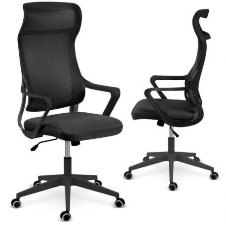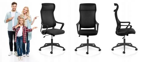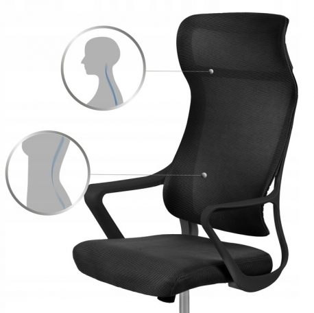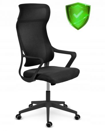 Wygodny fotel biurowy z wysokim oparciem wykonany z mikrosiatki.