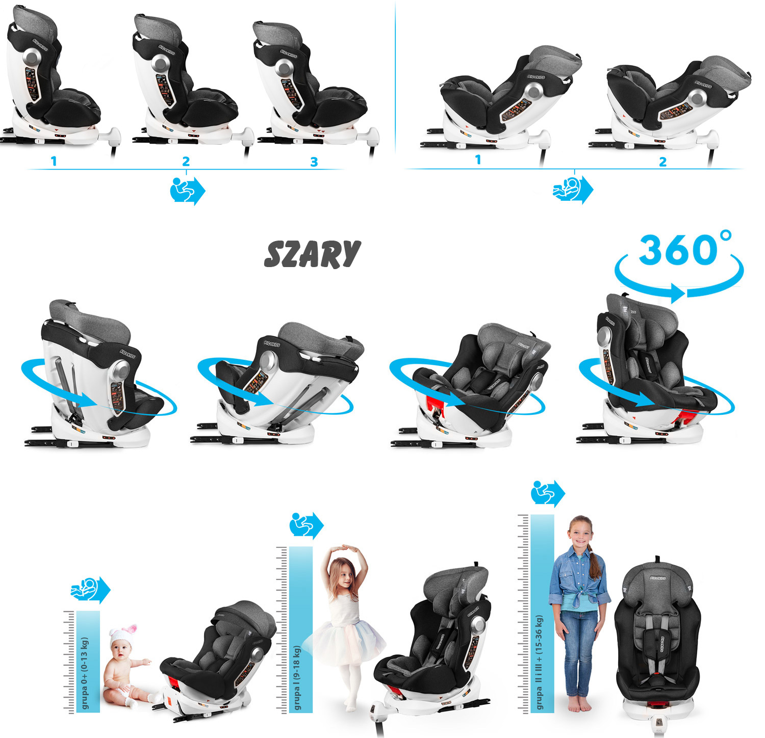 Fotelik samochodowy OBROTOWY 360° STIGO ISOFIX od 0 - 36 kg