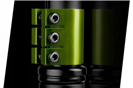 Poczwórna klamra z aluminium zapewnia, że zacisk wytrzyma nawet najdłuższe szlifowanie tricków. Cztery wzmocnione śruby sprawią, że hulajka przetrwa wielokrotne tailwhipy.