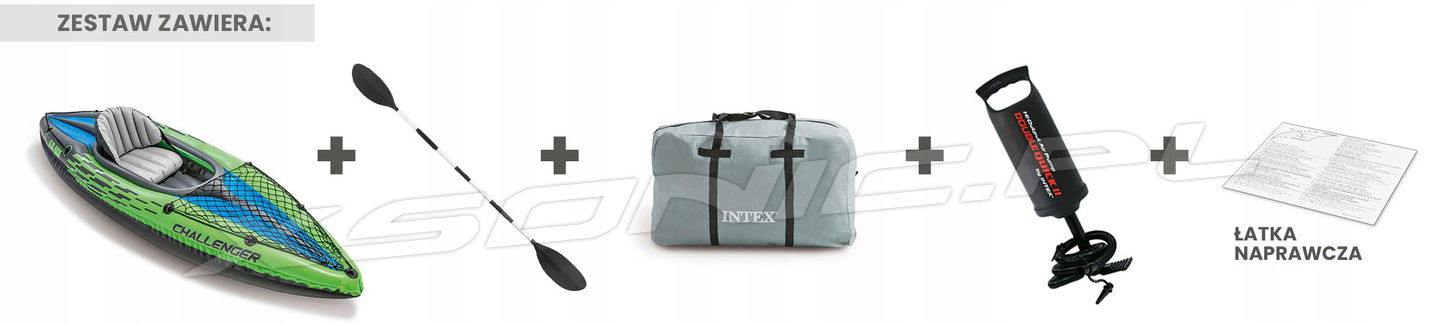 Kajak dmuchany Challenger K1 274 x 76 x 33 cm INTEX 68305 wiosła pompka: