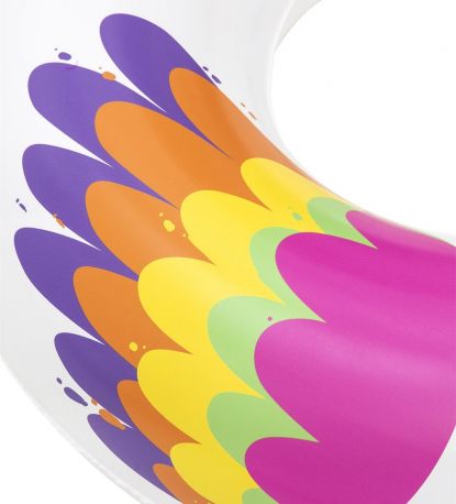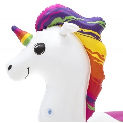 Koło do pływania Jednorożec dla dzieci Bestway 36159. Dmuchane koło wykonane jest z trwałego materiału PCV, co zwiększa jego wytrzymałość na czynniki zewnętrzne. Jest odporne na rozerwanie, chemię basenową, słoną wodę oraz palące słońce. Dzięki kolorowym elementom, dmuchany jednorożec wspaniale wygląda na zdjęciach z wakacji. Kółko przeznaczone jest dla dzieci w wieku od 10 lat. Jeśli jednak produkt ulegnie uszkodzeniu, nie ma się co martwić gdyż producent dołączył firmową łatkę naprawczą. Dzięki odsłoniętej środkowej części użytkownik jest ciągle chłodzony przez przepływającą wodę.