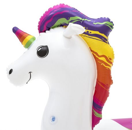 Dmuchane koło do pływania dla dzieci w postaci jednorożca 119 x 91 cm z kolorową grzywą.