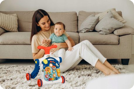 Zabawka rośnie wraz z dzieckiem! Dzięki prostej konstrukcji błyskawicznie przerobisz pchacz na jeździk i hulajnogę. Kółka z blokadą i antypoślizgową gumą, zapewnią bezpieczeństwo dziecku i jednocześnie nie rysują podłogi. Konstrukcja pchacza została tak zaprojektowana, żeby rozkładać siły, tak aby być bezpieczną dla dziecka.