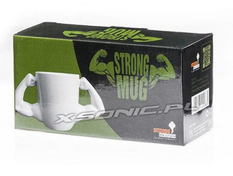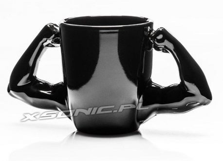 Prezentujemy śmieszny kubek siłacza strongmana. Posiada dwa uchwyty w postaci pokaźnych bicepsów. Występuje w kolorze czarnym i białym.