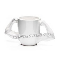 Kubek dla sportowca siłacza strongman biały czarny mięśnie bicepsy. Kubek siłacza to genialny prezent dla każdego mięśniaka, lub osobnika chcącego należeć do tej szlachetnej grupy. Bywalcy siłowni będą zachwyceni tym dużym muskularnym kubkiem, nawet jeśli daleko im do tak imponujących mięśni.