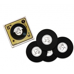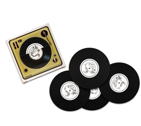 Oldschoolowe podkładki pod kubek o atrakcyjnym wyglądzie i wzornictwie. Swoim wyglądem przypominają prawdziwe płyty winylowe. Zapakowane zostały w eleganckie pudełko stylizowane na gramofon, dzięki czemu całość tworzy niesamowity efekt.