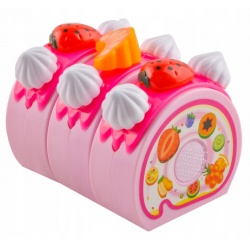 Tort urodzinowy do krojenia 80 elementów zabawka czajnik filiżanki. Elementy zabawki są połączone na rzepy, dzięki czemu dziecko może "kroić" przysmaki nożem, a następnie znów je połączyć. W zestawie znajdują się również talerzyki, sztućce, pucharek lodów i wiele innych elementów pozwalających idealnie wczuć się w atmosferę urodzinowego przyjęcia lub dekorowania przysmaków. Zabawka rozwija zdolności manualne i wyobraźnię. Możliwość krojenia różowego tortu urodzinowego sprawia, że dziecko doskonali zdolności manualne, a ponadto ćwiczy prawdziwe krojenie, co zaprocentuje w przyszłości. Zabawa w cukiernika, a następnie w gospodarza przyjęcia urodzinowego zawsze będzie frajdą.