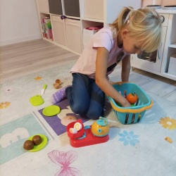 WPŁYWA NA ROZWÓJ DZIECKA – zabawka nie tylko umożliwia ciekawe i radosne spędzenie czasu, ale również wpływa na rozwój intelektualny dziecka oraz wzrost jego umiejętności motorycznych (ruchowych). Rozwija wyobraźnię i pobudza kreatywność, a także uczy współpracy w grupie i usprawnia zdolności społeczno-integracyjne; jest przydatna nie tylko w rozpoznawaniu nazw i kształtów warzyw, ale też w nauce kolorów oraz liczenia.