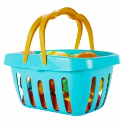 KOSZYK NA ZAKUPY PALNIK I GARNKI – zestaw posiada koszyczek w którym wszystkie akcesoria się zmieszczą , co sprawia, że dziecko z łatwością może przenosić owoce i warzywa w dowolne miejsce. Dodatkowym atutem jest mini kuchenka oraz garnek i czajnik.
