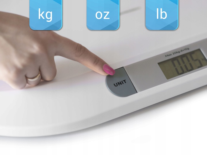 Elektroniczna waga dla niemowląt Berdsen wyświetlacz LCD do 20kg. Posiada specjalnie wyprofilowaną szalę, która umożliwia bezpieczne położenie dziecka bez obaw o jego zsunięcie się lub wypadnięcie w trakcie ważenia. Staje się niezastąpionym urządzeniem dla rodziców dziecka, któremu zalecono bieżące kontrolowanie masy ciała. Dzięki domowej wadze możesz uniknąć codziennych wizyt w przychodniach i przebywania wśród zarazków. Zamiast tego wygodnie zważysz dziecko w swoim domu. Waga jest zasilana bateryjnie, więc możesz z niej korzystać bez konieczności podłączania do prądu. Takie przenośne wagi dla niemowląt często są wykorzystywane przez panie położne podczas domowych wizyt.