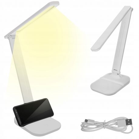 Lampka biurkowa LED szkolna biała stojak na telefon 3 barwy światła