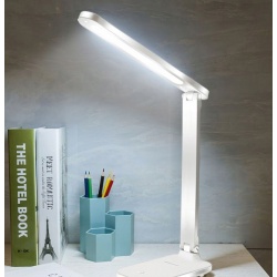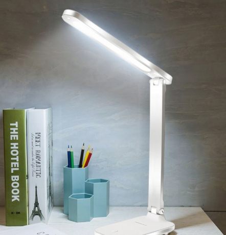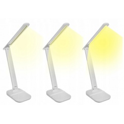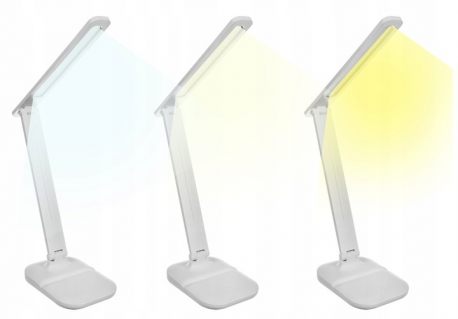 Lampka biurkowa LED szkolna biała stojak na telefon 3 barwy światła. Prezentowana lampka biurowa wyposażona została w specjalny stojak na telefon, dzięki któremu bez problemu umieścisz w nim swoją komórkę. Ponadto lampka emituje mocne światło o mocy 7W i została wyposażona w 3 rodzaje trybów oświetlenia – kolory ciepłe, neutralne oraz zimną biel. Funkcja łagodnego ściemniania i rozjaśniania, sprawia, że każdy dopasuje ją do swoich indywidualnych potrzeb. Żeby ściemnić lub rozjaśnić świecenie, wystarczy przytrzymać palcem główny przycisk. Lampkę wykonano z wysokiej jakości materiałów, dzięki czemu jest odporne na wszelkiego rodzaju uszkodzenia mechaniczne i posłuży przez długi czas.