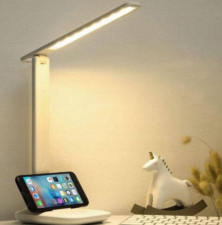 STOJAK NA TELEFON – prezentowana wielofunkcyjna lampka biurowa posiada stojak na telefon, w którym bez żadnego problemu będziesz mógł umieścić swoją komórkę.