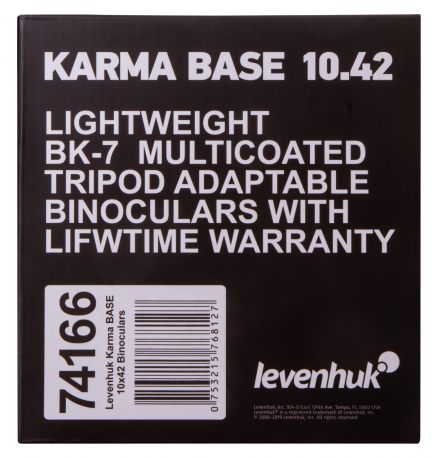 Lornetka Levenhuk Karma BASE 10x42 pryzmaty dachowe powiększenie 10x. Układ optyczny przekazuje ostry oraz kontrastujący obraz, a obudowa o niewielkiej masie i rozmiarze nie powoduje zmęczenia u obserwatora. Doskonała ergonomiczność pozwala używać lornetki do długotrwałych obserwacji bez statywu. Levenhuk Karma BASE 10x42 to idealny wybór do poznawania dzikiej przyrody.