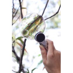 Zapobiega to zmęczeniu wzroku podczas dłuższych obserwacji. Zasilanie jej następuje poprzez dołączone do zestawu baterie. Aby włączyć lub wyłączyć podświetlenie, wciśnij gumowy przycisk znajdujący się z boku rączki. Brak ramki przy soczewce i chromowana obudowa powodują, że lupa atrakcyjnie się prezentuje. W zestawie dodatkowo znajduje się ściereczka wraz z futerałem i dożywotnią kartą gwarancyjną.