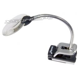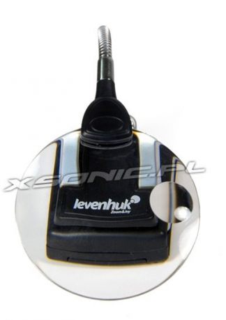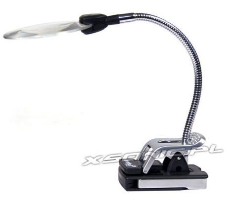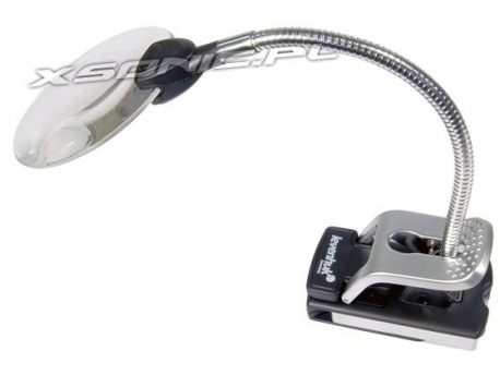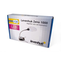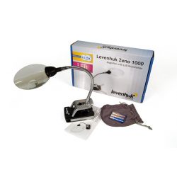Lupa biurkowa z podświetleniem LED Levenhuk Zeno 1000. Specjalny wspornik pozwala zamontować lupę na stole, a elastyczne ramię umożliwia ustawienie jej w odpowiedniej pozycji. Dzięki takiemu rozwiązaniu można trzymać obiekt obiema rękami, bez potrzeby trzymania lupy. Powiększenie soczewki głównej wynosi 2,5x, a jej średnica wynosi 88mm.