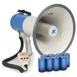 Głośny i wydajny megafon o mocy 20W. Posiada wbudowany akumulator, ale można go również zasilać przy pomocy zwykłych baterii.