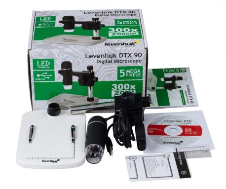 Mikroskop cyfrowy Levenhuk DTX 90 z kamerą 5 Mpx i statywem. To urządzenie małych rozmiarów i bardzo lekkie. Zapewnia powiększenie od 10x do 300x. Został wyposażony w kamerę 5Mpx oraz specjalny statyw. Podstawa posiada skalę pomiarową oraz dwa zaciski do przymocowania próbki. Mikroskop łączy się z komputerem przy pomocy kabla USB. Badanie próbek i przetwarzanie obrazu wykonuje się za pomocą oprogramowania dołączonego do standardowego zestawu. Możesz nagrywać filmy oraz robić zdjęcia, a później je edytować.