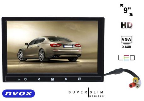 Monitor samochodowy z matrycą LED 9 cali NVOX złącze VGA HDMI VIDEO