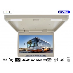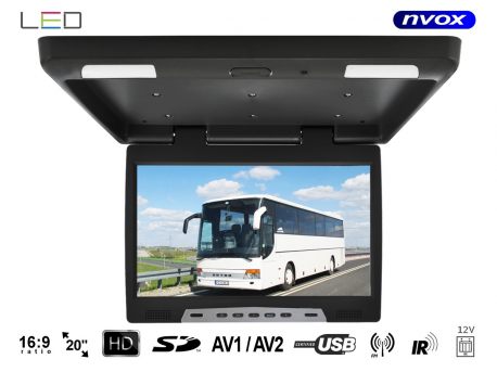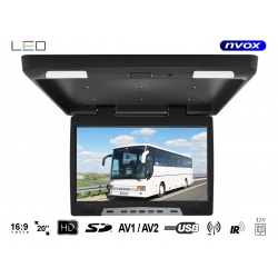 Monitor podwieszany LED True Bright 20 cali multimedialny odtwarzacz. Jeden z większych monitorów podwieszanych oferowanych przez firmę NVOX. Ekran monitora wyświetla obraz w proporcjach 16:10 w bardzo wysokiej rozdzielczości 1680 x 1050 pikseli. W urządzenie wbudowano dwa transmitery: FM do bezprzewodowej transmisji dźwięku do radia samochodowego oraz IR do przesyłu fonii kanałem podczerwieni do słuchawek bezprzewodowych. Specjalnie wzmacniane podwójne zawiasy eliminują drgania podczas jazdy na nierównej nawierzchni.