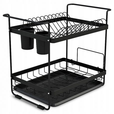 Suszarka do naczyń dwupoziomowa styl LOFT MS-602 Massido czarna. Suszarka do naczyń jest stabilna, co zapewnia bezpieczeństwo użytkowania. Produkt posiada specjalnie skonstruowane nóżki, które zostały solidnie połączone z suszarką. Dzięki temu, nie ma ryzyka przewrócenia, nawet przy dużym obciążeniu naczyniami. Suszarki do naczyń dwupoziomowe świetnie sprawdzają się podczas wizyty gości oraz w dużych rodzinach. Pod spodem znajduje się praktyczna tacka, która chroni blat kuchenny przed ociekająca wodą z naczyń. Podczas opróżniania z wody wystarczy tylko wysunąć spod suszarki i wylać wodę. Suszarka dwupoziomowa do naczyń została wyposażona również w praktyczny pojemnik na sztućce. Podział na 2 komory sprawia, że w prosty sposób możemy posegregować łyżki, widelce i noże. Elegancki loftowy wygląd sprawi, że suszarka będzie ozdobą nowoczesnej kuchni. Z suszarki można korzystać na wiele sposobów, można także używać samego kosza np. do owoców lub warzyw.