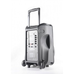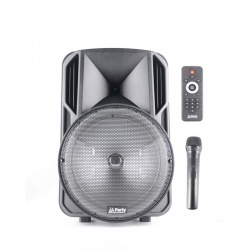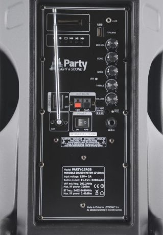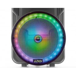 Kolumna mobilna na kółkach LED 12'' USB BT MIC FM PARTY-12RGB. Sprzęt jest łatwy w obsłudze i bezproblemowy w transporcie. A jeszcze dodatkowo posiadający wiele opcji kontrolowania dźwięku czy to z kolumny, czy z mikrofonów. Tylny panel kolumny udostępnia użytkownikowi sporo pokręteł do regulacji, a jeśli nie chce Ci się wstawać z fotele lub stoisz za daleko możesz sterować za pomocą dołączonego, bezprzewodowego pilota. I na koniec Tuner FM czyli dodatkowa opcja, która pozwoli Ci cieszyć się ulubionymi audycjami bez potrzeby podłączania radia. Mobilne nagłośnienie sprawdzi się praktycznie w każdym miejscu, zarówno komercyjnym jak i w przydomowym ogrodzie do karaoke. PARTY-12RGB to samodzielny, zasilany akumulatorowe zestaw nagłaśniający z wbudowanym światłem LED wokół głośników.
