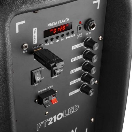Głośnik mobilny Fenton 2x 10" FT210LED zestaw karaoke z Bluetooth 700W. Przenośne i bezprzewodowe, możesz zabrać gdziekolwiek jesteś i odtwarzać muzykę z opcji wejścia strumieniowego Bluetooth, karty micro SD, USB lub urządzenia zewnętrznego przez AUX. Zbudowane z wysuwanym uchwytem i wytrzymałymi kołami, te systemy dźwiękowe są idealne do wszelkich aktywności na świeżym powietrzu lub w pomieszczeniach. Świetne do śpiewania karaoke dzięki akcesoriom głośnika, w tym przewodowemu mikrofonowi i w pełni funkcjonalnemu pilotowi. Wbudowany akumulator zapewnia niezawodne zasilanie, a jeśli akumulator jest rozładowany, system można po prostu podłączyć za pomocą dostarczonego kabla USB. Światła LED za kratkami sprawiają, że głośniki te są przyjemnym dodatkiem na każdą imprezę i inne okazje.