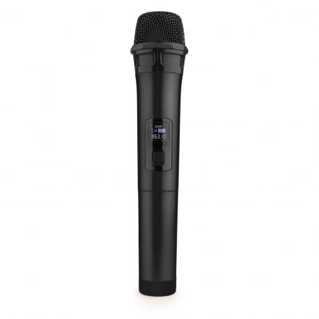 Zawiera 2 mikrofony ręczne UHF z oddzielną regulacją głośności