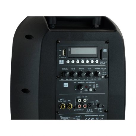 Model wyposażony został w funkcję odtwarzania za pomocą portu BLUETOOTH. Umożliwia ona pobieranie plików audio z telefonu, tabletu czy laptopa bez zbędnych połączeń przewodowych. Takie rozwiązanie odtwarzania muzyki będzie dużym ułatwieniem dla instruktorów sportowych i tanecznych, prezenterów, dla wszystkich tych, którym zależy na szybkiej i łatwej konfiguracji sprzętu z odtwarzaczami multimedialnymi z Bluetooth. Oprócz tego znajdziemy tu również wbudowane gniazdo USB poprzez które możemy odtwarzać pliki MP3, WMA zapisane na standardowych nośnikach.