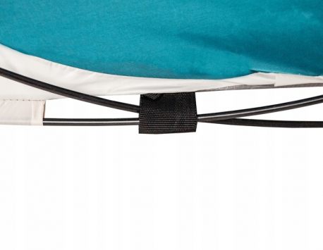 SAM SIĘ ROZKŁADA - szkielet namiotu tworzą elastyczne druty z włókna szklanego - dzięki czemu po wyjęciu z pokrowca rozkłada się w ciągu 2 sekund. Stanowi doskonałe połączenie parasola oraz parawanu, jednak jest dużo wygodniejszy w użytkowaniu oraz zajmuje o wiele mniej miejsca, co jak wiadomo jest istotne podczas pakowania bagażu.