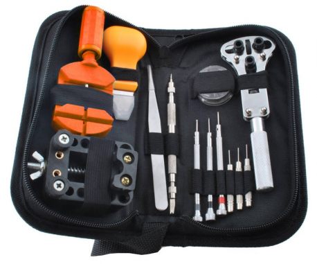 Zestaw zegarmistrzowski narzędzia imak klucz w zamykanym etui. Specjalistyczne narzędzia niezbędne w każdym warsztacie zegarmistrzowskim. Idealne zarówno dla profesjonalisty, jak i amatora do napraw domowych. Wytrzymałe etui pozwala na utrzymanie porządku w narzędziach, łatwe przechowywanie oraz przenoszenie. Dzięki takim narzędziom nie tylko naprawisz zegarek ale również dostosujesz długość bransolety.