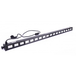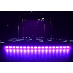 LED BAR UV18 to profesjonalna, solidnie wykonana, a jednocześnie bardzo lekka listwa oświetleniowa UV wyposażona w osiemnaście 3-watowych diod LED, której zadaniem jest emisja niewidzialnego dla człowieka światła ultrafioletowego. Led bar UV rewelacyjnie sprawdza się w pubach, restauracjach, klubach tanecznych i dyskotekach, gdzie promieniowanie UV tworzy efekt przypominający fluorescencję niektórych barw – szczególnie bieli. LEDowa listwa ma długość 100 cm, a na obu jej końcach znajdują się przykręcane nóżki umożliwiające jej ustawienie pod wybranym kątem w stosunku do podłoża. Pełnią one również rolę uchwytów montażowych, dzięki którym belka Led UV może być instalowana na kratownicach i rampach oświetleniowych.