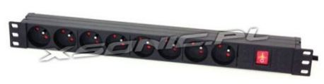 Listwa zasilająca do mocowania w racku 8 wyjść sieciowych gniazd. Doskonale nadaje się do podłączenia urządzeń elektrycznych różnego typu. Urządzenie posiada podświetlany włącznik. Panel przedni został wykonany w kolorze czarnym, a boczne panele są aluminiowe. Urządzenie jest przystosowane do montażu w racku 19-calowym. Wykonane zostało starannie i solidnie, dzięki czemu sprawdzi się podczas profesjonalnych zastosowań.
